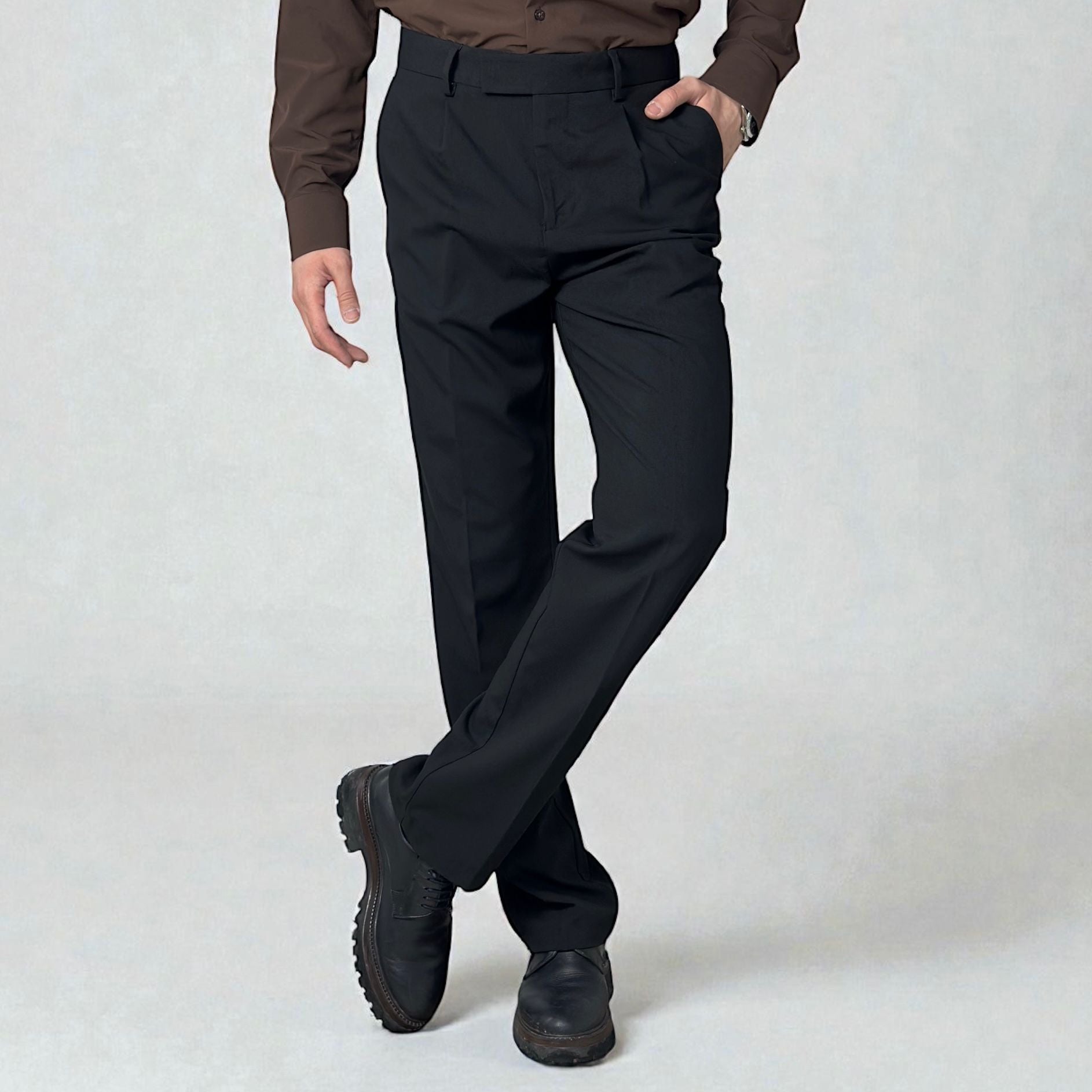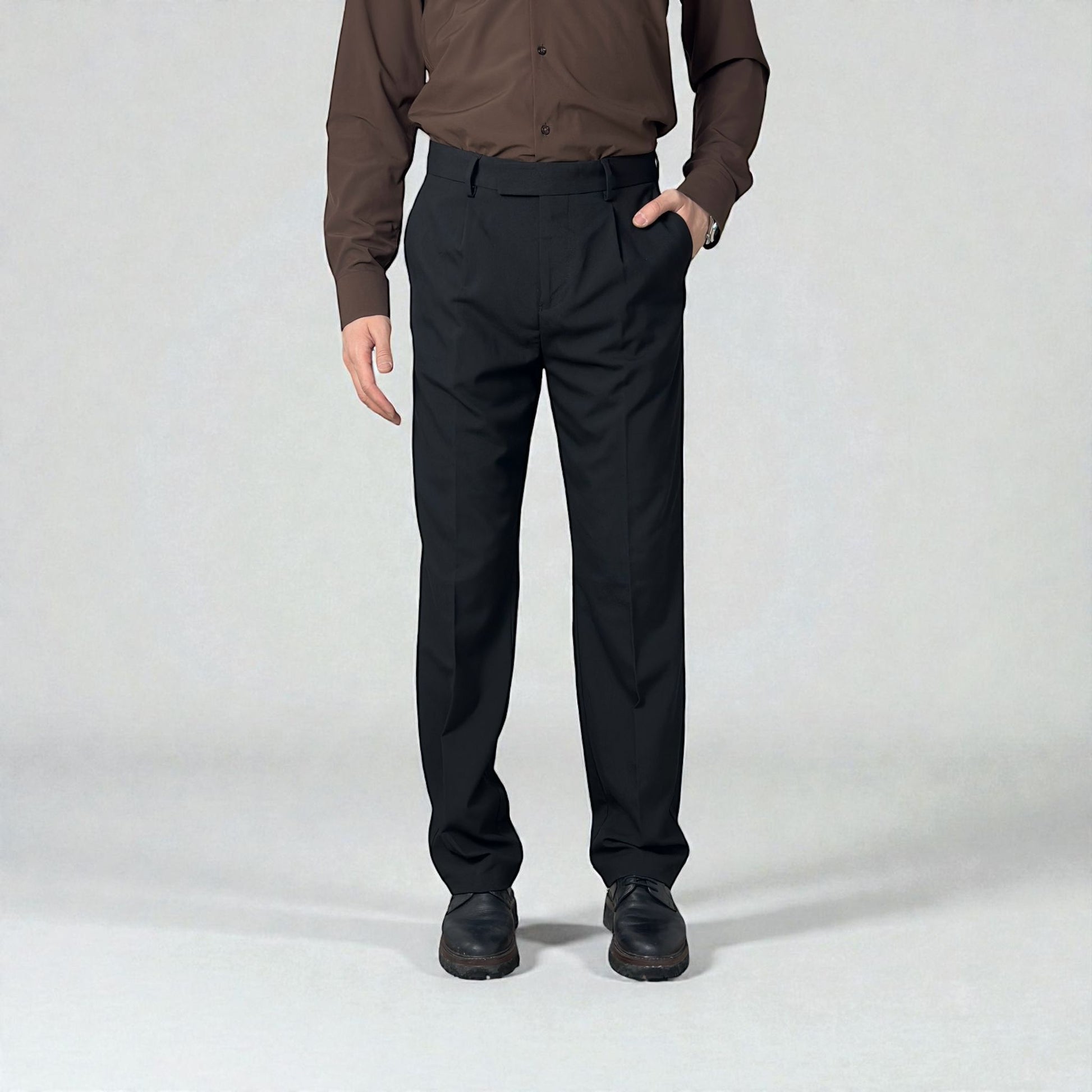BAGGY FİT KUMAŞ PANTOLON - SİYAH